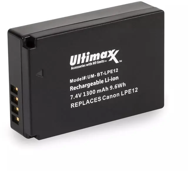 ULTIMAXX Replacement Battery for Canon LPE12 - 1300 mah x2