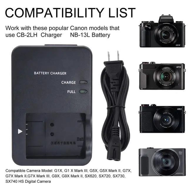 NB-13L CB-2LH charger is suitable for the following camera batteries