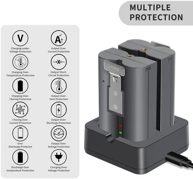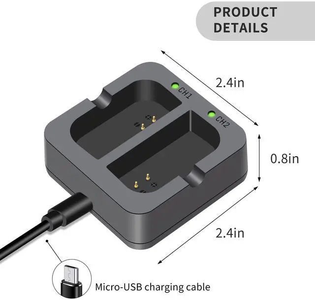 The Charging Station Dock is designed to be compact in correct size, plugs into a standard outlet and fully charges 2 batteries at the same time, nearly twice as fast than with a Micro USB cord alone.