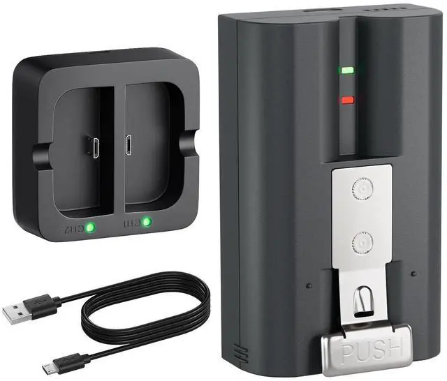 No. This product includes: 1 Replacement batteries,1 Dual charger station,1 USB cable.