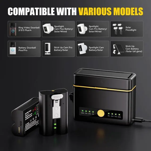 2 Pack Replacement for Ring Battery with upgraded LED display Charging case, 6040mAh Rechargeable Ring camera battery, Compatible with Ring 2/3/3 Plus/4, Spotlight Camera, Stick Up Cam