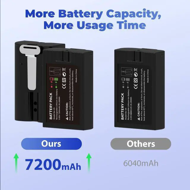 UPGRADED BATTERY CAPACITY-Upgraded to 7200mAh high-capacity 3.65V Li-ion cells, ensuring longer runtime and consistent power for your Ring cameras. Safe to charge or discharge anytime.