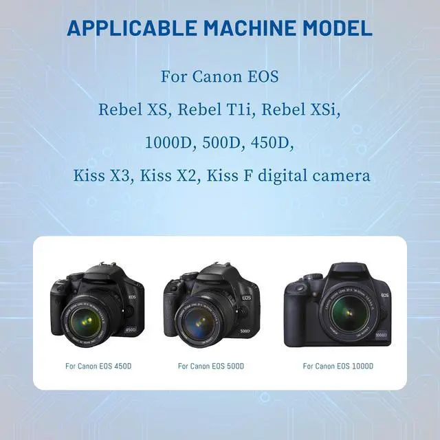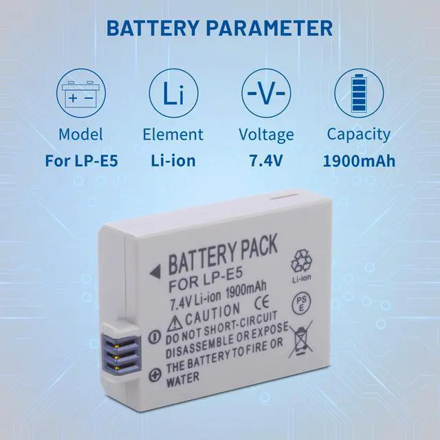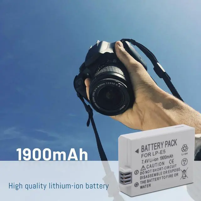 LP-E5 Battery: Battery Capacity: 1900mAh, Battery Voltage: 7.4V