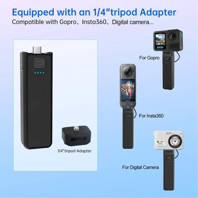 Handle Grip Battery Charger Battery Handle Built-in 5000mAh Battery Compatible for DJI Pocket 3, Xtra Muse Gopro, Insta 360, Akaso, Phone, Digital Camera