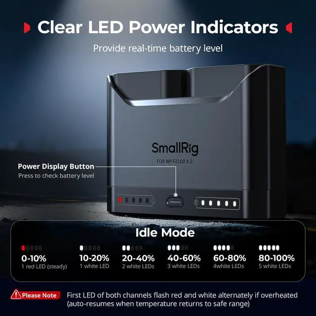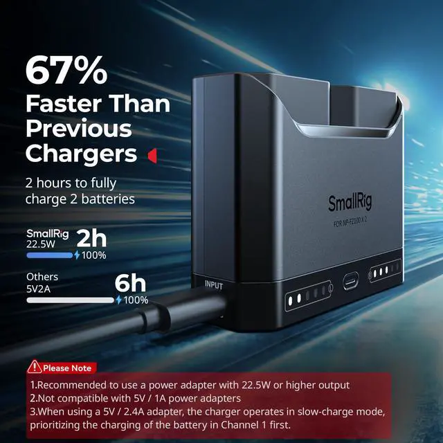 | 2H Dual-Slot Rapid Charging | USB-C with LED Indicator | 2.5H Full Charged | Clear Power Indicators | PD 60W 4-Channel Fast Charger | Continuous Power Supply | Continuous Power Supply |