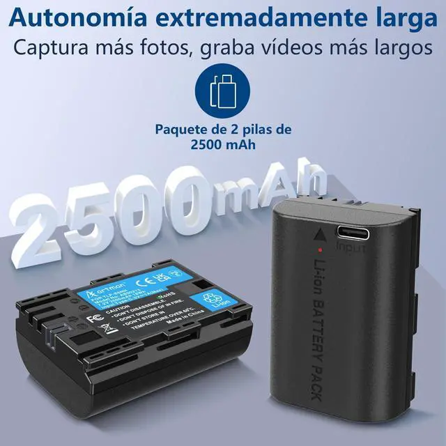 Artman 2-Pack LP-E6NH Battery with USB-C for Canon Camera