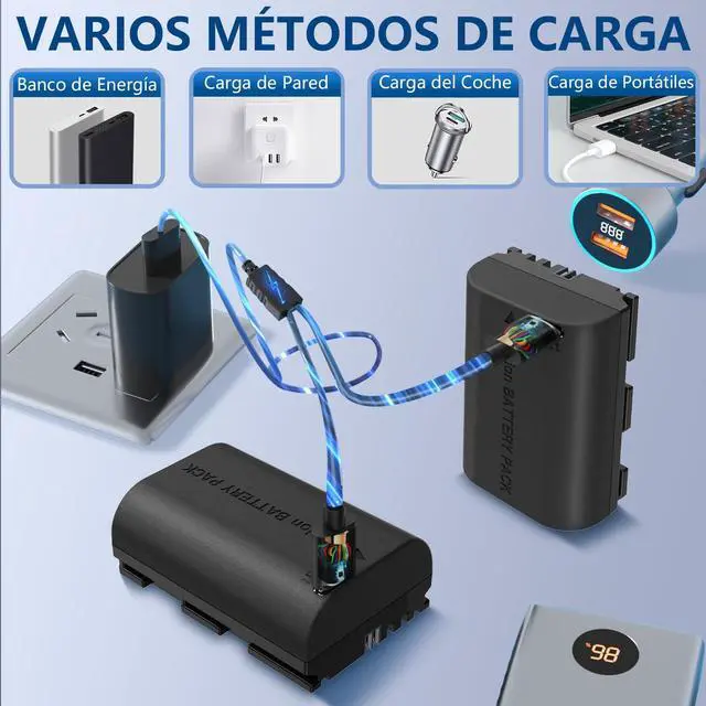 USB Charging Convenience : 2-in-1 USB-C cable provide you with convenience, you can charge two LP-E6NH batteries or any two USB-C devices at once; Greatly improves usage efficiency and it still ensures both speed and safety