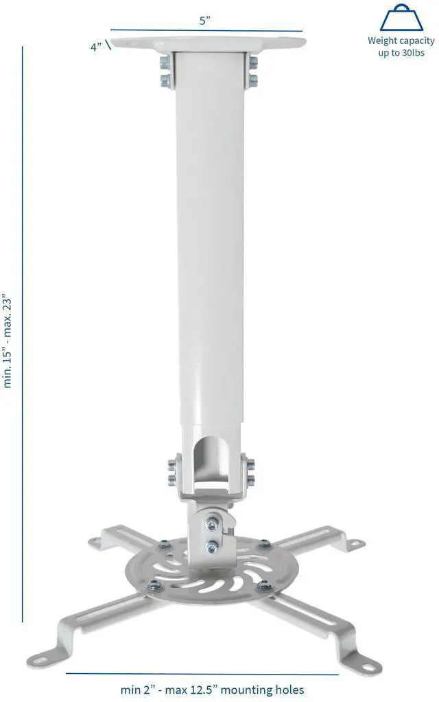 - MOUNT-VP02W extends from 15" to 23" from flat ceilings to fit the user's needs.