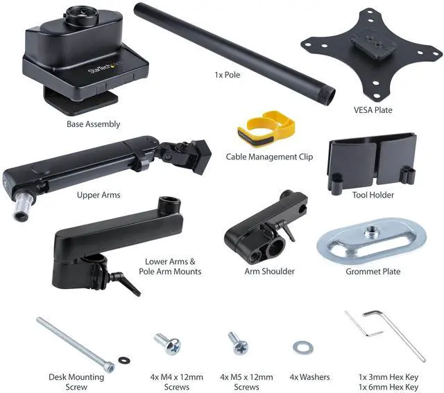 StarTech Desk Mount Monitor Arm Up to 40inch Screen/17.6lb 8kg Mechanical Spring-Assisted Arm C-Clamp/Grommet VESA 75x75/100x100