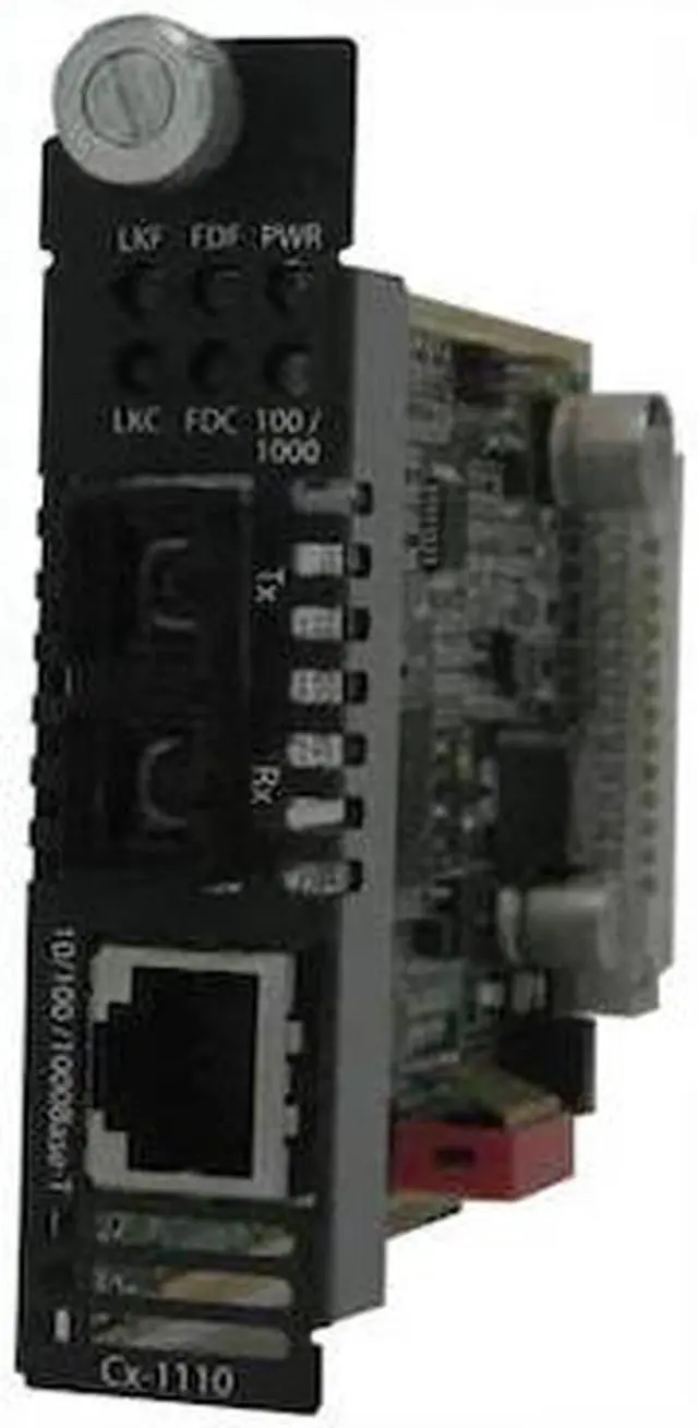 Rate Converter Module: 10/100/1000BASE-T (RJ-45) [100 m/328 ft. ] to 1000BASE-LX/LH 1310 nm single mode (SC) [10 km/ 6.2 miles] or multimode (SC) [550 m/1804 ft. ] using a mode conditioning adapter. Managed or unmanaged operation