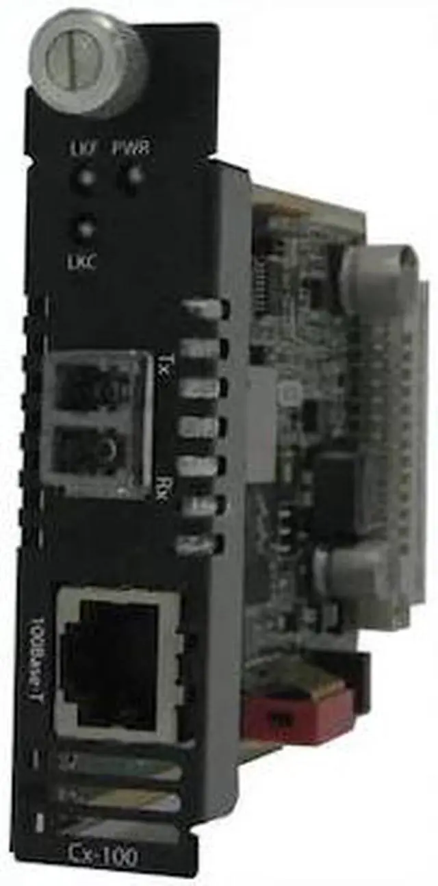 Media Converter Module: 100BASE-TX (RJ-45) [100 m/328 ft. ] to 100BASE-FX 1310nm multimode (LC) [2 km/ 1.2 miles]. Managed or unmanaged operation