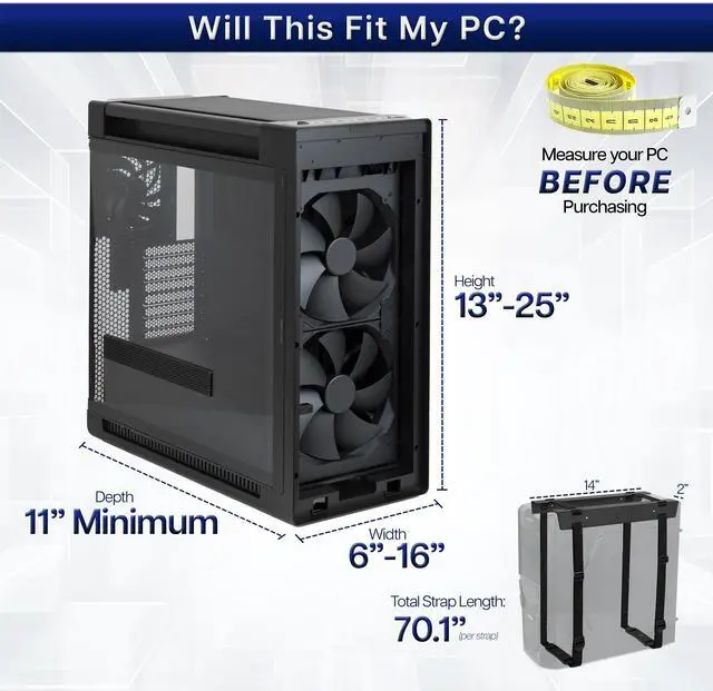 Protect your computer while freeing valuable office space with MOUNT-PC02S from VIVO! This CPU holder lifts a computer completely off of the floor and fixes it to the underside of a desk. No more worries about ground vibrations or dust bunnies shortening the life of your expensive equipment. This product comes complete with a sturdy steel frame construction, anti-skid straps, and anti-rust powder coating. Its easy to install anywhere, and does not require professional assembly. Necessary mounting hardware is provided.