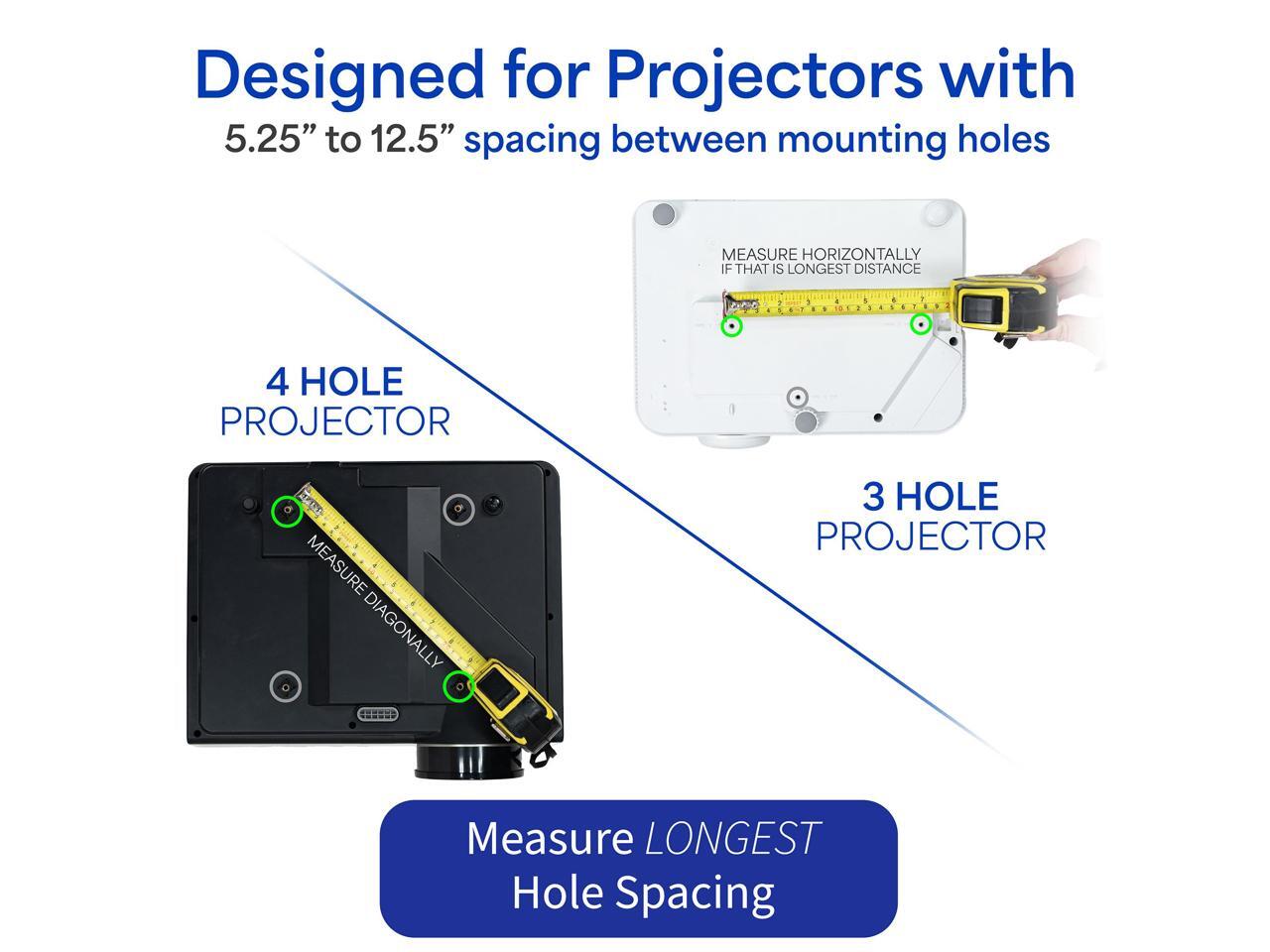 - VIVO Universal Projector Mount: Our universal mounting design enables this bracket to fit the majority of projector brands on the market with mounting hole distance ranging from 8.9 to 12.4