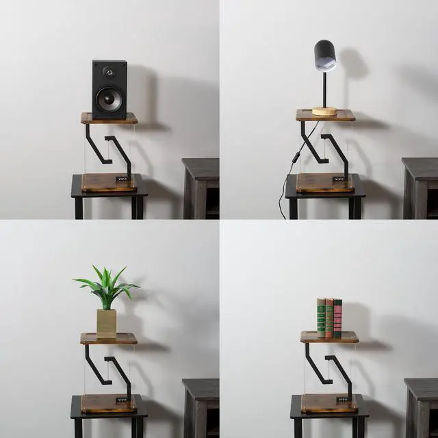 Combine elevated sound and aesthetics with the Vintage Brown / Black Floating Speaker Stand (STAND-TEN01D) from VIVO! Featuring an anti-gravity design that uses tension to create a floating effect, this modern shelf elevates your speaker nearly 15 inches from the base for enhanced sound and a stunning display. Perfect modern decor for home and office with a versatile design that can display a wide variety of items.