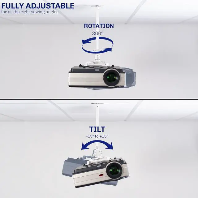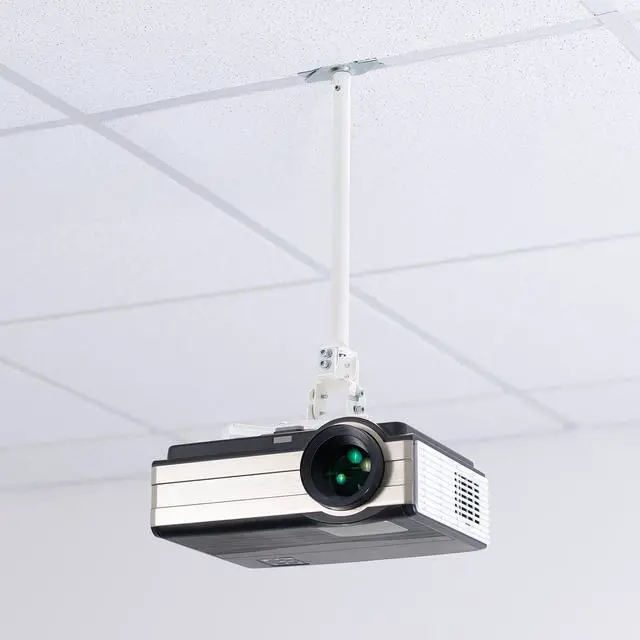 Position your projector right where you want it with the White Drop Ceiling Projector Mount with Scissor Clamp (MOUNT-VP10DP) from VIVO! Instead of having to buy mounting fixtures and put holes in your ceiling, take advantage of this mount that attaches directly to aluminum drop ceiling grids! With your projector at an ergonomic height, your audience can enjoy a comfortable viewing experience. This product features tilt, swivel, and rotation for comfortable viewing angles, solid steel construction for a safe and secure setup, scissors clamp for simple metal grid installation, and more! All hardware and instructions are provided to get the mount assembled and your projector installed in no time!