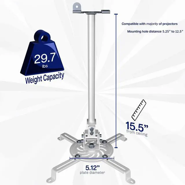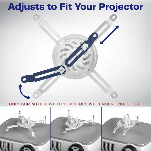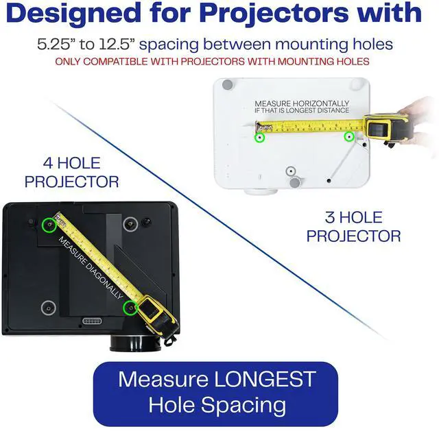 - Projectors: Designed with adjustable arms to fit most projector brands with mounting ranges from 5.25 to 12.5