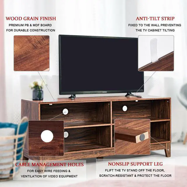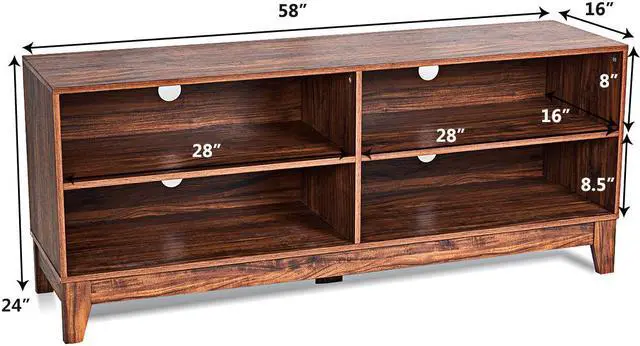 cable management system: 4 cut-offs and the 4 open shelves, will help them ventilating. The classic appearance and wood color also fit with modern atmosphere, even it can upgrade the level of your living room or recreation room. So don’t hesitate to buy it.