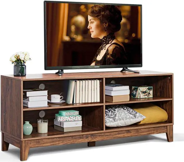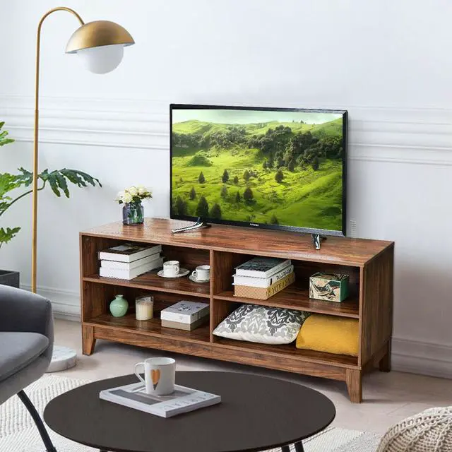 Crafted with good-quality MDF and PB materials, this TV stand console can meet your various needs. It means that if you are finding a practical and beautiful for your living room, it will be a good choice. Looking at the thicken legs, which are properly set in best place to support the frame of this TV stand. Also the stand tabletop is flat enough, adding 4 shelves, to hold many audio video equipment or other sundries. And don’t worry about overheat of devices, the
