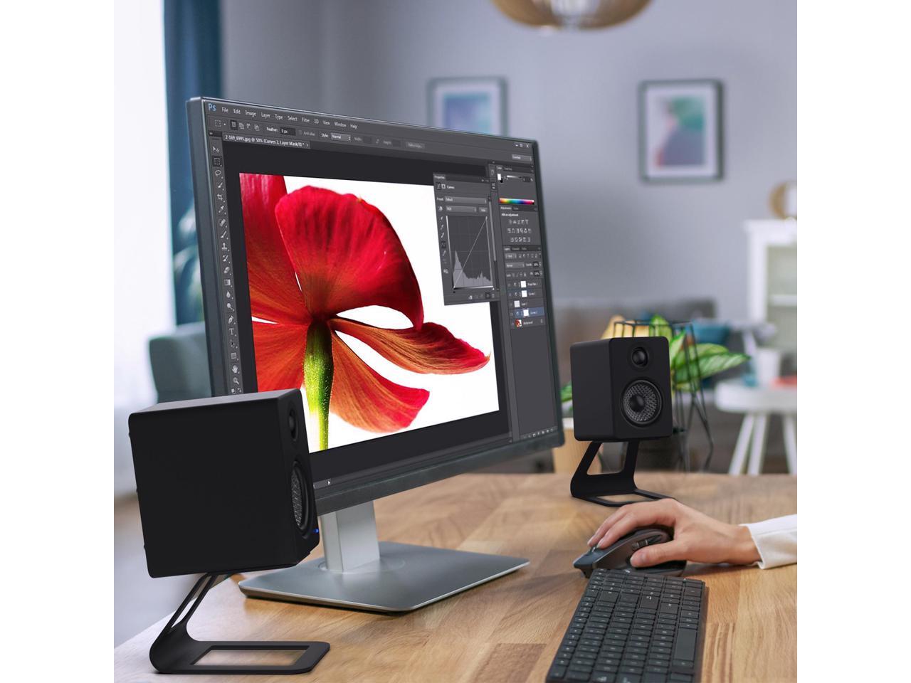 Elevated design for compact desktop speakers