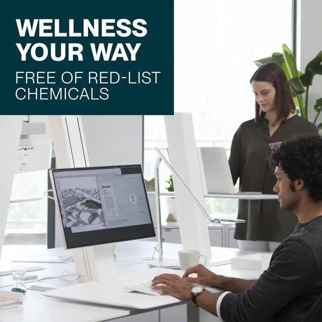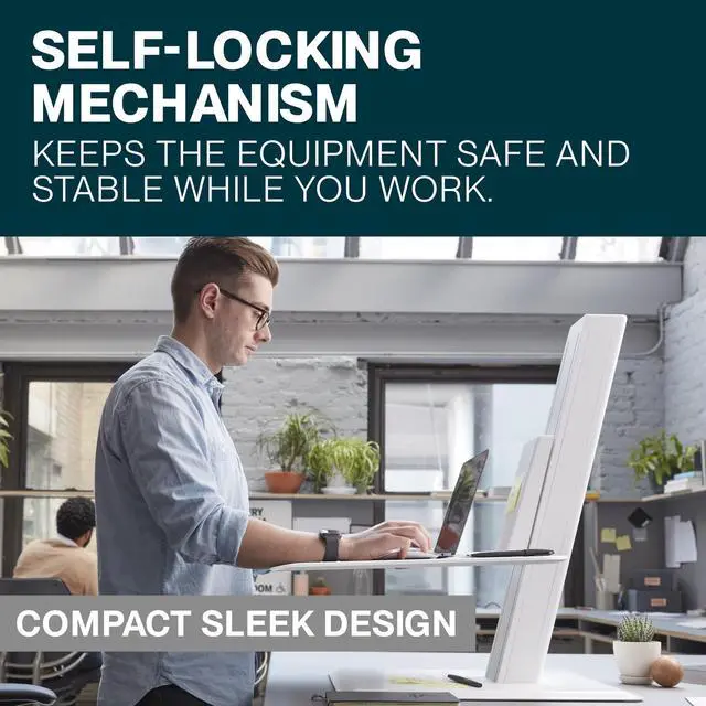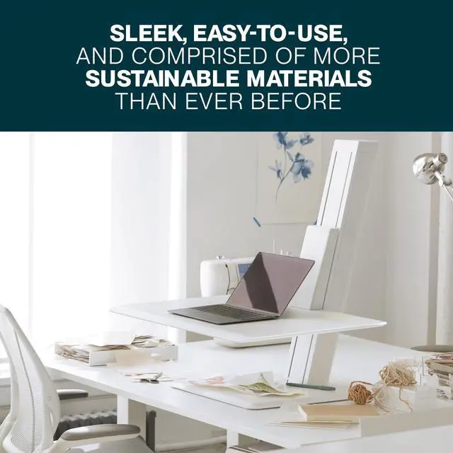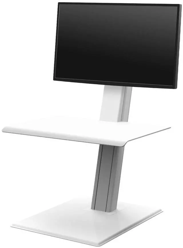 Quick stand ECO - single monitor sit/stand workstation, portable, sustainable, made W/ non-toxic materials, integrated cable management, freestanding base, 18.6 in height adjustment range, accommodates up to 35lbs, Product weight= 42.3 lbs (White)