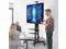 Motorized rolling TV cart has two shelves that hold up to 11 lbs each. Place a webcam on the upper shelf of the rollable TV stand with TV motorized lift.