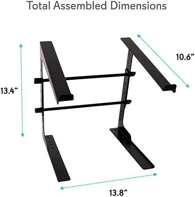 • *****UNIVERSAL USE: Compact laptop or desk stand with rugged, reliable and ergonomic design for universal use. It can be used with computers, laptops, DJ equipment, turntables, and more. Perfect for the home, office, school or business use