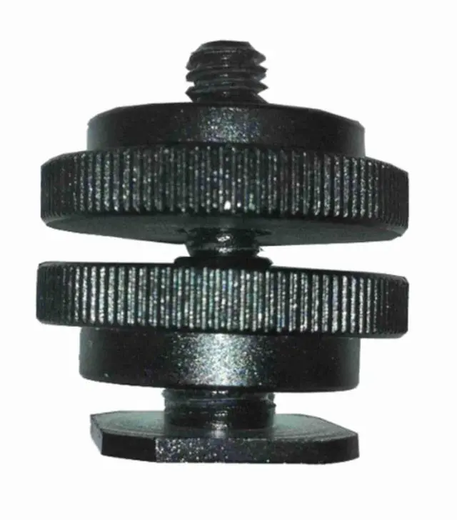 Designed to mount accessories which have a 1/4x20 threadedfemale receptacle to cameras, brackets, etc., which have a standard accessory shoe.All metal, locking design. Both the post and the flash accessory foot can be locked intoposition.