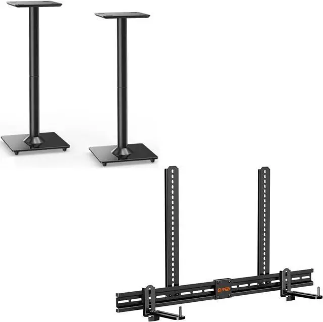 ELIVED ELIVED Universal Speaker Stand 31 Inch Height Holds Large Speaker Up to 22 lbs, Soundbar Mount Under TV for Soundbar with/Without Holes Holds Universal Soundbars Up to 15lbs.