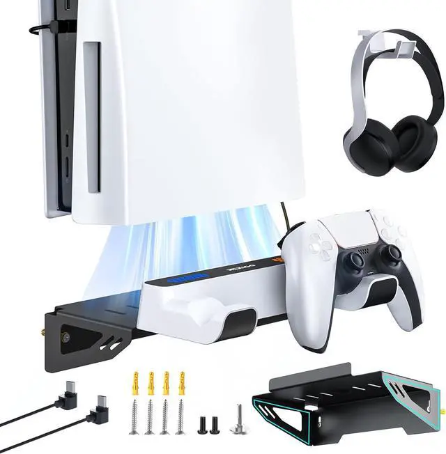 Space-Saving Solution Mount your PS5, Dual_Sense controllers, and headphones on the wall to save space in your gaming room.