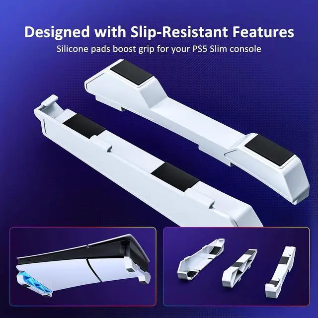 Compact & Lightweight DesignWith your PS5 Slim/Pro in a horizontal position, you can easily place it on a desktop, inside a cabinet, or under a TV. Not to mention, this space-saving stand is lightweight, portable, and easy to remove.