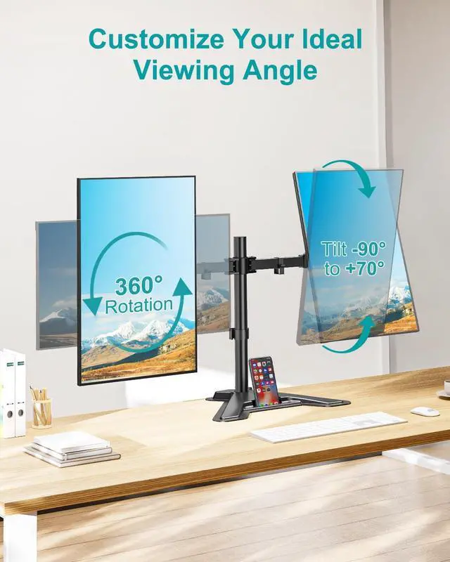 MOUNT PRO Dual Monitor Stand, Free-Standing Full Motion Monitor Desk Mount Fits 2 Screens up to 27 inches,17.6lbs with Height Adjustable, Swivel, Tilt, Rotation, VESA 75x75 100x100, Black