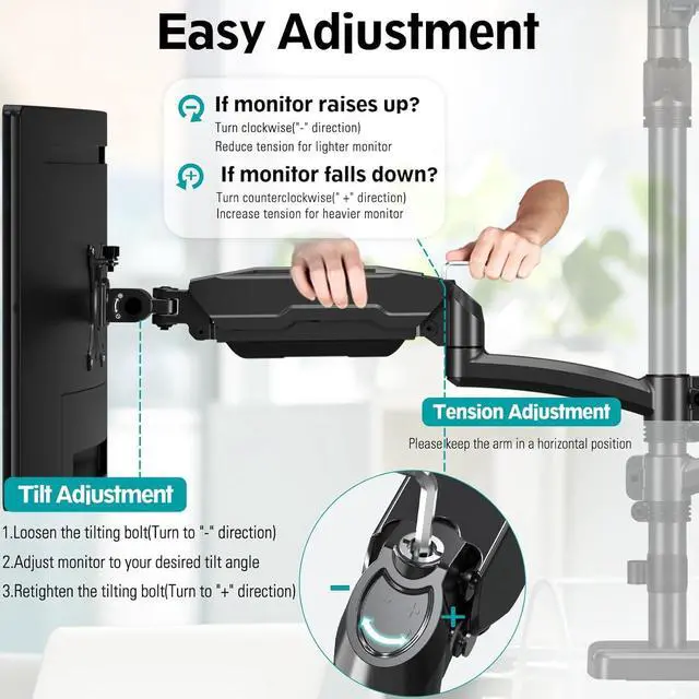 Full Motion Monitor Arm - The adjustable triple monitor mount tilt your screen from +90° to -90°, swivel it 180°, and rotate it 360° from landscape to portrait, providing you an optimal viewing angle. This full motion monitor desk mount can be positioned or stacked in many different ways. If you want a monitor mount to accommodate three monitors side by side, please search for B0BN6M3468, as this is a 3-arm stacked monitor mount.