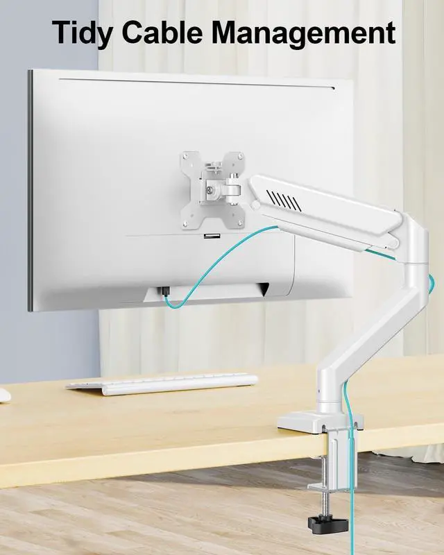 Clear Up Desk Space - The hidden cable management can keep your desktop cleaner and tidier. And the double monitor arm can lift 2 screens off the desk to free up more than 80% desktop space, so that you can place more accessories to create a more comfortable work environment