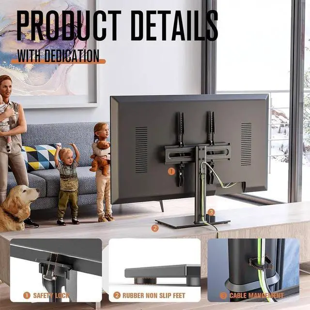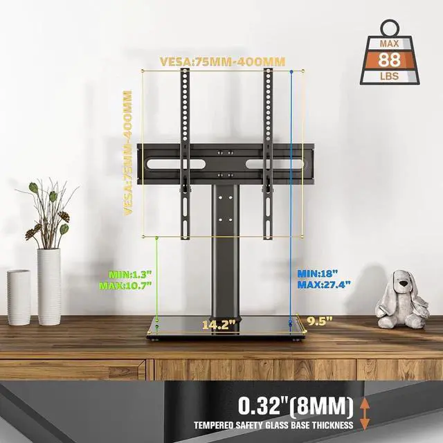 STURDY TO HOLD 27-60" TVS This universal tabletop TV stand base fits for most 27 32 37 39 40 42 43 47 49 50 55 60 inches LED, LCD, Plasma and OLED 4K Smart flat panel/curved screen TVs/ Monitor/ PC, TV mounting bracket is compatible with TV brand such as Samsung, Sony Bravia, LG, Sharp, Insignia, Vizio, Haier, Toshiba, Sharp, Panasonic, Philips, Dynex, Element, TCL, JVC and so on. Sturdy well constructed tv stand is a good decoration for your living room, bedroom, dining room, school, office