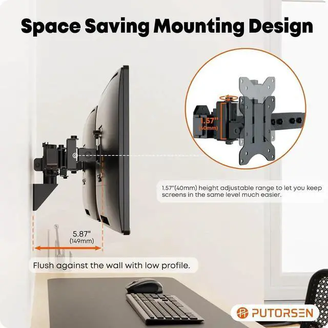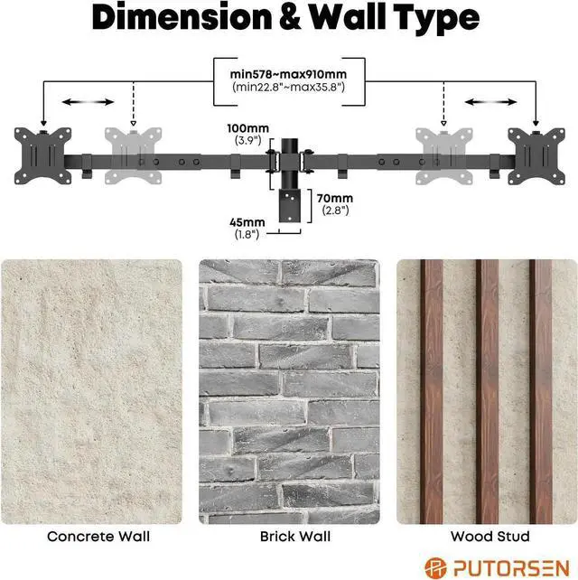 Reliable Service: We offer 10 years to all customers who bought wall mount dual monitor arm from us. Product package include 1 x vesa dual monitor wall mount, 1 x Hardware Kit, 1 x Instruction Manual, 4 x zip ties for cable management.
