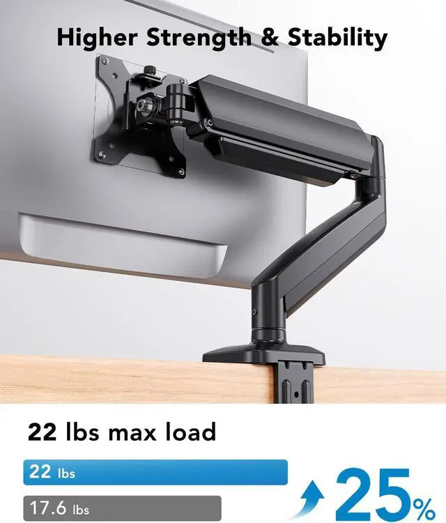 Stability & Durability: Built with aerospace-grade aluminum alloy and cold-rolled steel, this monitor arm provides stable support for your large screen. The gas spring system has undergone 20,000-cycle tests to ensure long-lasting performance and reliability.