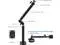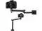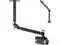 The wall mount camera arm length is 15.7 in /40 cm, the base length is 3.54 in / 9 cm and width is 2.55 in / 6.5 cm, each screw hole distance are 2.59 in / 6.6 cm, 1.73 in / 4.4 cm, box include aluminum alloy mount, one ball tripod ball head and a pack of screw accessories.