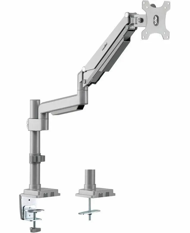 ErgoReach EP15 Premium Aluminum Single Ergonomic Monitor Pole Mounted Arm, C-Clamp & Grommet? Premium Gas Spring? Supports up to 34" Display, 19.8 lb? VESA 75? 75 & 100x100mm? Ergonomic Tilt/Swive-? Portrait and Landscape? Aluminum Silver Grey