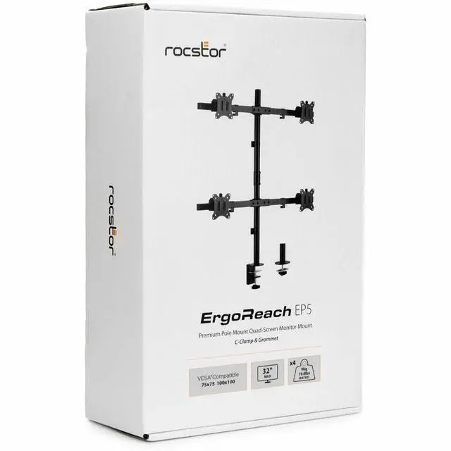 ERGOREACH EP5 PREMIUM QUAD SCREEN MONITOR MOUNT, C-CLAMP & GROMMET- SUPPORTS UP
