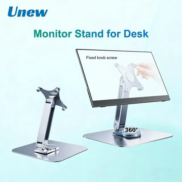 Unew Portable Monitor Stand Aluminum Alloy Desktop 360 ° Rotation, VESA 75x75mm Suitable for 10~18.5 inch Monitor M4 Screws 5KG Load Capacity Ultra Stable Hold for Laptop Tablet Silver