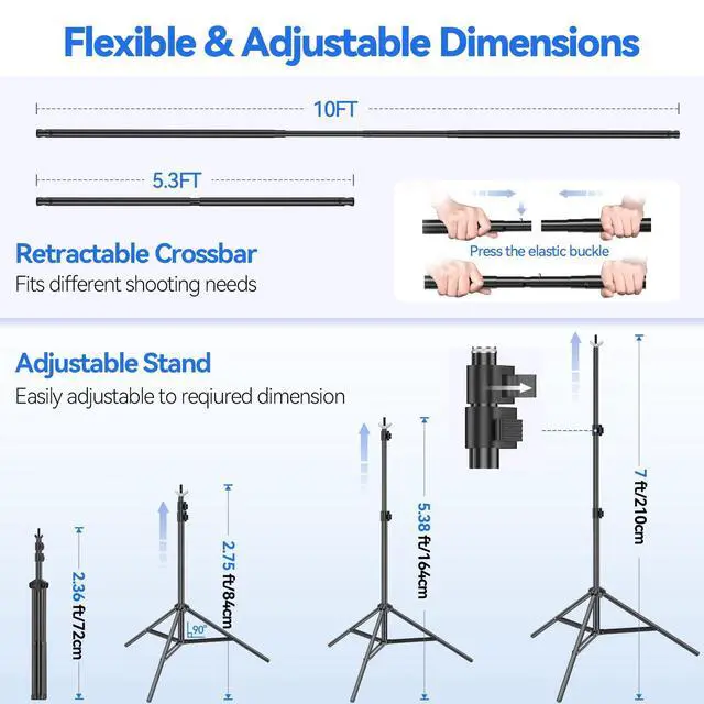 | Size | 7*10ft Stand/6*9ft Backdrop |