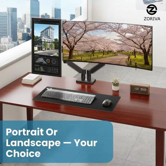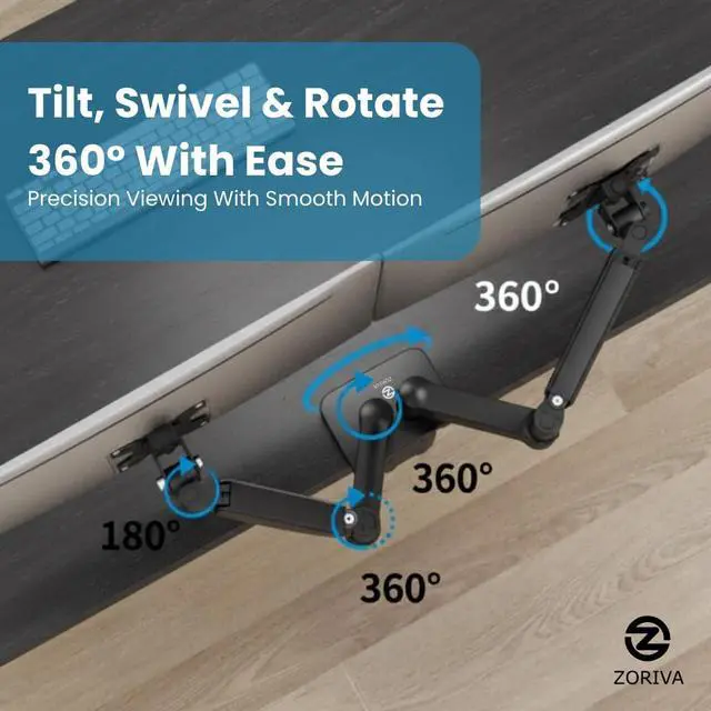 Experience smarter productivity with ZORIVA Dual Monitor Stand—engineered for ergonomic comfort, seamless adjustments, a cleaner, clutter-free desk.