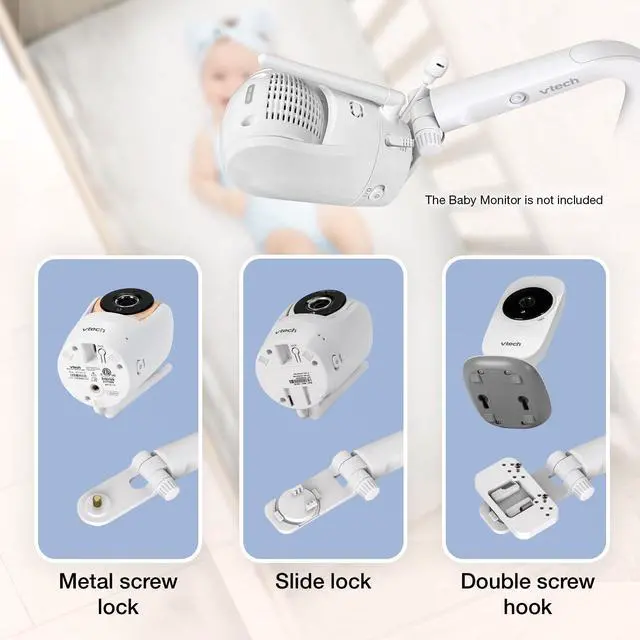 The VTech Floor Stand provides a flexible, over-the-crib view for most VTech Baby Monitors, ensuring an unobstructed lens to keep an eye on your little one. With 3 interchangeable brackets to fit various wall mount designs, you can easily attach your existing VTech baby monitor camera to the floor stand, making it versatile and allowing you to monitor your baby’s every movement - from bassinets to cribs to toddler beds.