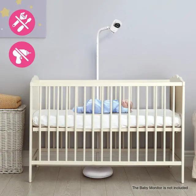 The 5-foot (160cm) floor stand offers an optimal, elevated view for any crib and allows the camera to capture a wide, unobstructed angle, providing full visibility of your baby's movements, whether in a bassinet, crib, or toddler bed.