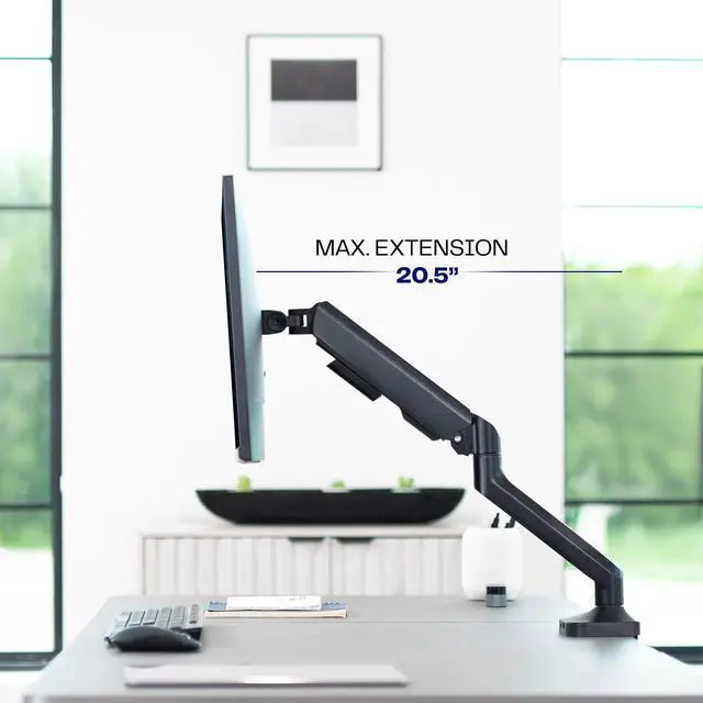 The spring-assist arm counterbalances the weight of your monitor for ergonomic height adjustments
