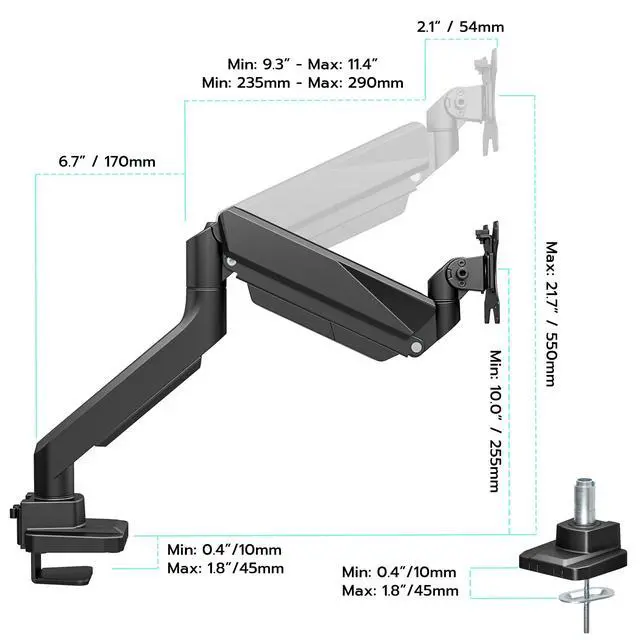 Ergonomic Comfort & Full Motion Proper monitor positioning prevents neck and shoulder strain. This fully adjustable arm lets you place your screen exactly where you need it. Enjoy smooth tilt (+45° to -45°), swivel (+90° to -90°), and 360° rotation for the perfect viewing angleideal for work, gaming, or multitasking