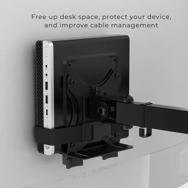 Includes all necessary hardware for mounting the device on a monitor arm or mount, a pole, and under a desk - includes silicone strips to protect your device from scratches and a visual step-by-step instruction manual