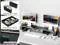 Dual monitor stand provides ample storage space