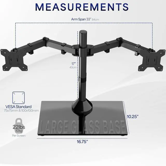 Dual Monitor Stand w/ Glass or Wood Base