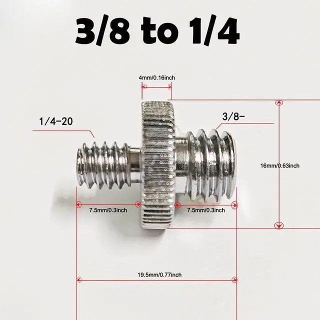 Description: 1/4 ""To 3/8""( Male to Male) Tripod Screw Adapters Meet International Standards,Allow You to Get More Rig Combination Possibilities and Freedom in Photography